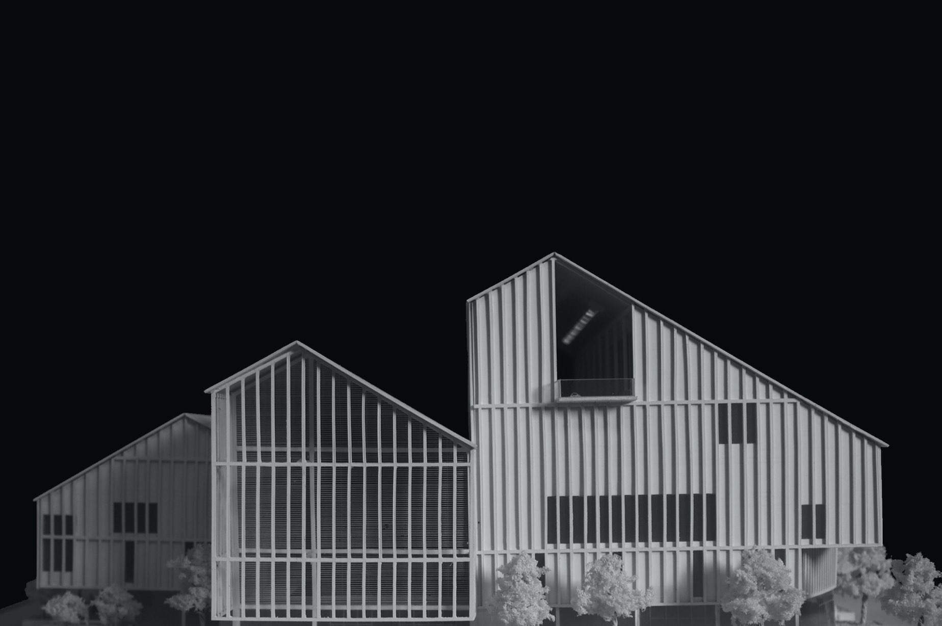 We choose the simplest but yet locally-familiar roof type called ‘panggang pe’ to cover 3 boxed programs that undulates according to its volume. Although ‘panggange-pe’ is commonly used as utilitarian building such as storage, we view this selection is more appropriate rather than using the formal ‘joglo’ roof which much more appropriate to use in single story, traditional approach private house or formal institution.